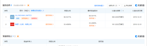 据股权信息显示,联想(北京)有限公司系联想(上海)电子科技有限公司背后股东之一,持股比例约为33%。同时,联想集团是联想(北京)有限公司唯一股东,持股比例为100%。