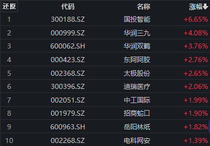 近期强势的央企改革板块早盘窄幅震荡。相关指数中,中证央企结构调整指数 (000860) 早盘下跌,成分股涨跌互现。上涨个股中,国投智能涨近7%,华润三九涨超4%,华润双鹤涨近4%,东阿阿胶、太极股份、迪瑞医疗涨超2%,中工国际、招商蛇口、岳阳林纸、电科网安等涨逾1%。