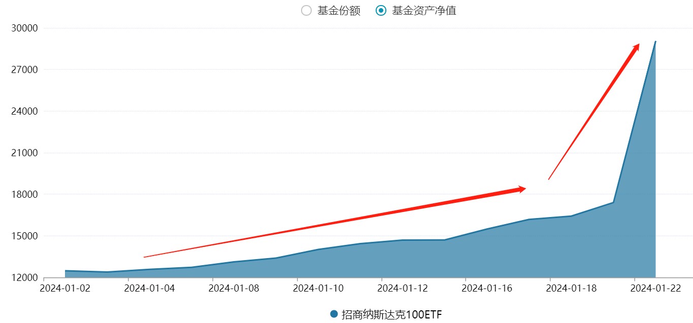 继昨日申购金额、成交额、总规模悉数新高后,今日(2024年1月24日)纳斯达克100ETF(159659)盘中再度放量异动,截至午间收盘,纳斯达克100ETF(159659)半日成交1.51亿元,超过昨日同期;盘中呈现大额净流入状态。