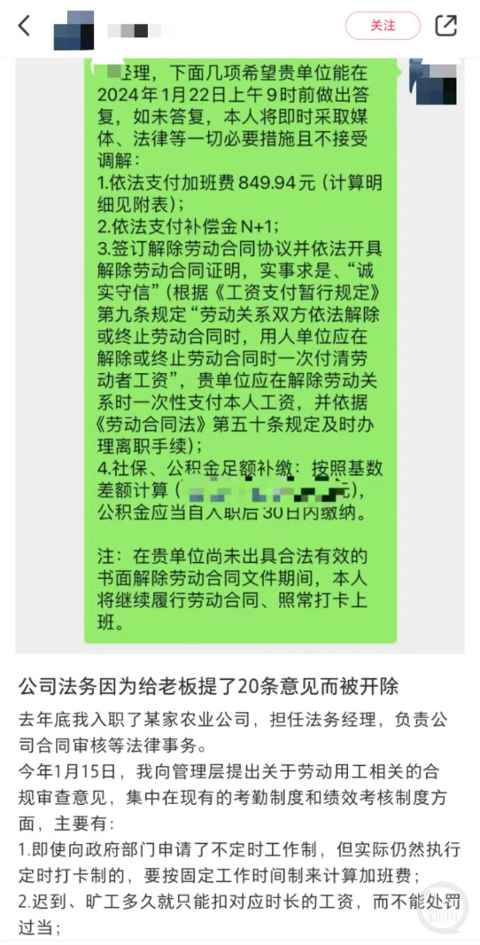 “入职后,我在熟悉公司制度的过程中发现了一些问题,1月15日就向管理层提出了20条关于劳动用工相关的合规审查意见。”赵先生介绍,在当天晚上的电话会议上,老板表示不会采纳,现在的制度是和之前的法务、人事一条一条过的,没有问题。