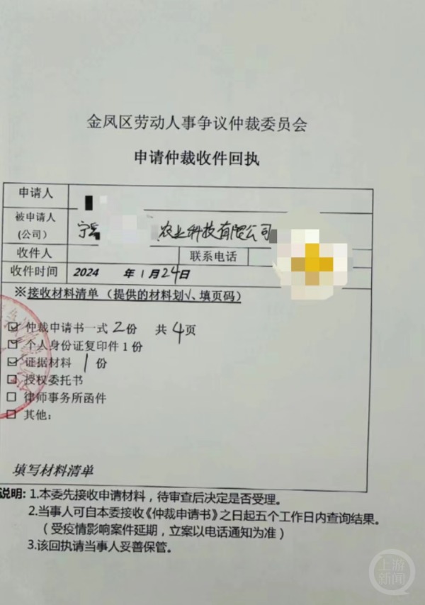 2月2日,银川金凤区劳动仲裁委向上游新闻记者证实,刚刚受理赵先生的仲裁案件,目前收到了赵先生提供的立案材料,还在联系农业公司那边收传票,预计3月中下旬才会开始走程序。